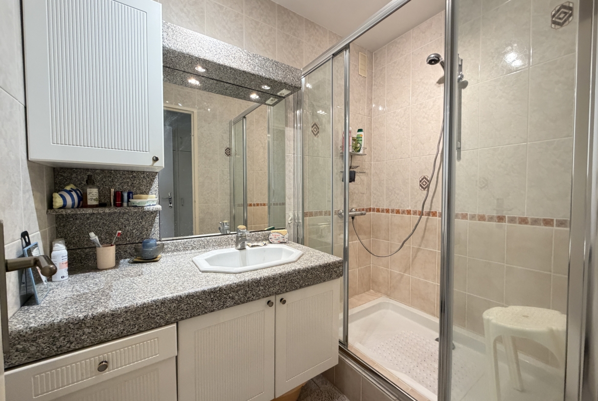 Cet appartement bénéficie également d’une cave ainsi que d’un stationnement privatif, offrant confort et praticité au quotidien.