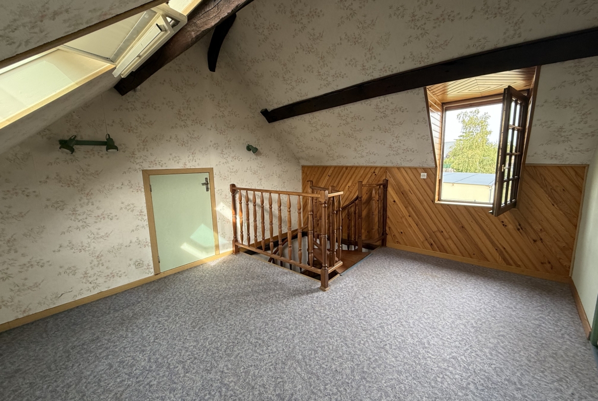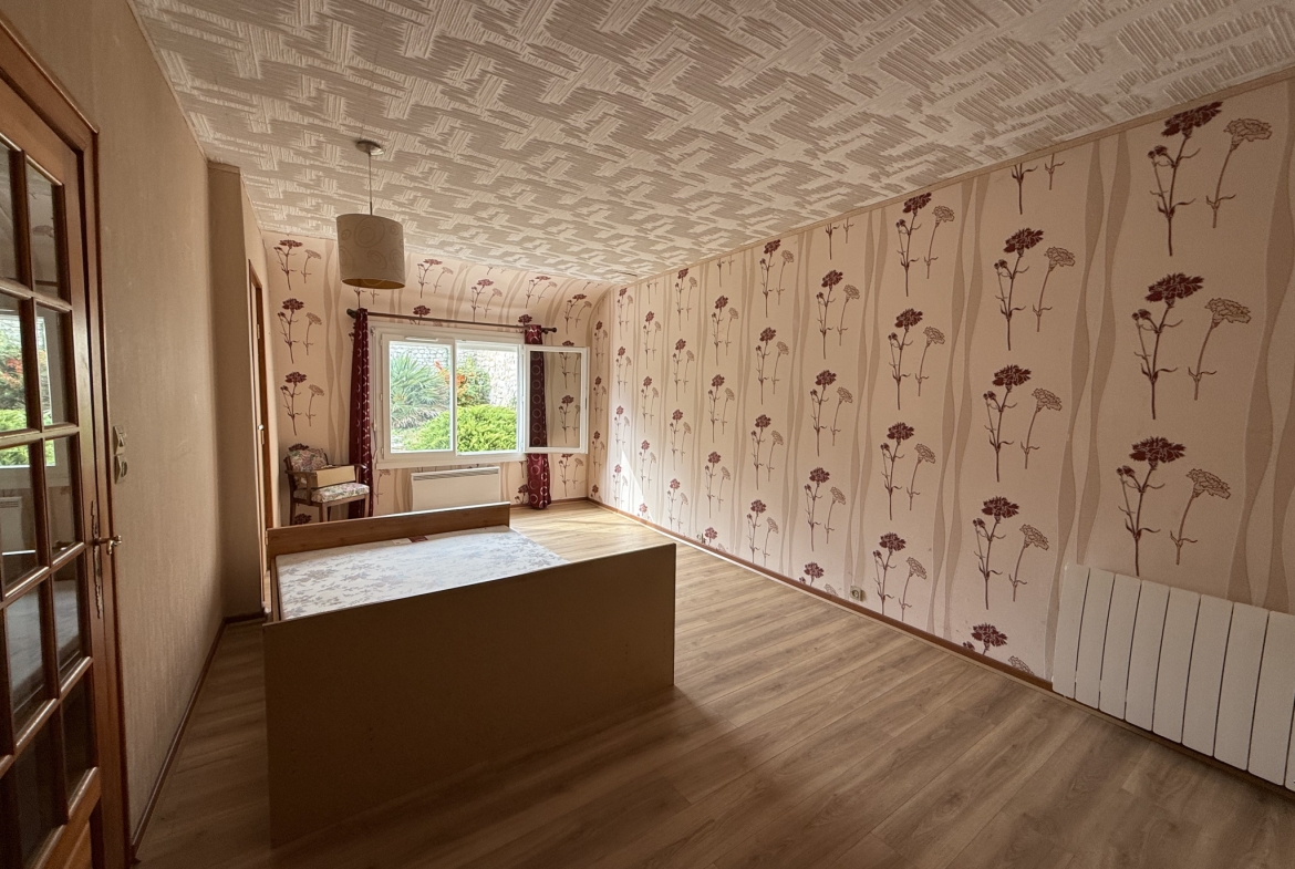 Venez découvrir cette maison vivable de plain-pied offrant au rez-de-chaussée une cuisine, une salle de douche avec WC, une chambre idéale pour une vie de plain-pied ainsi qu’un grand séjour lumineux de plus de 30 m2. À l’étage, vous trouverez une spacieuse pièce palière pouvant être aménagée en bureau, une seconde chambre et la possibilité de créer une troisième chambre. À l’extérieur, vous bénéficierez d’un grand terrain de 470 m2, d’un garage et d’une dépendance pouvant servir d’atelier, de rangement ou d’espace polyvalent selon vos besoins.